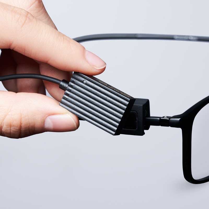 メガネのつるに取り付けることで、デジタルデバイスを操れるウェアラブルデバイス